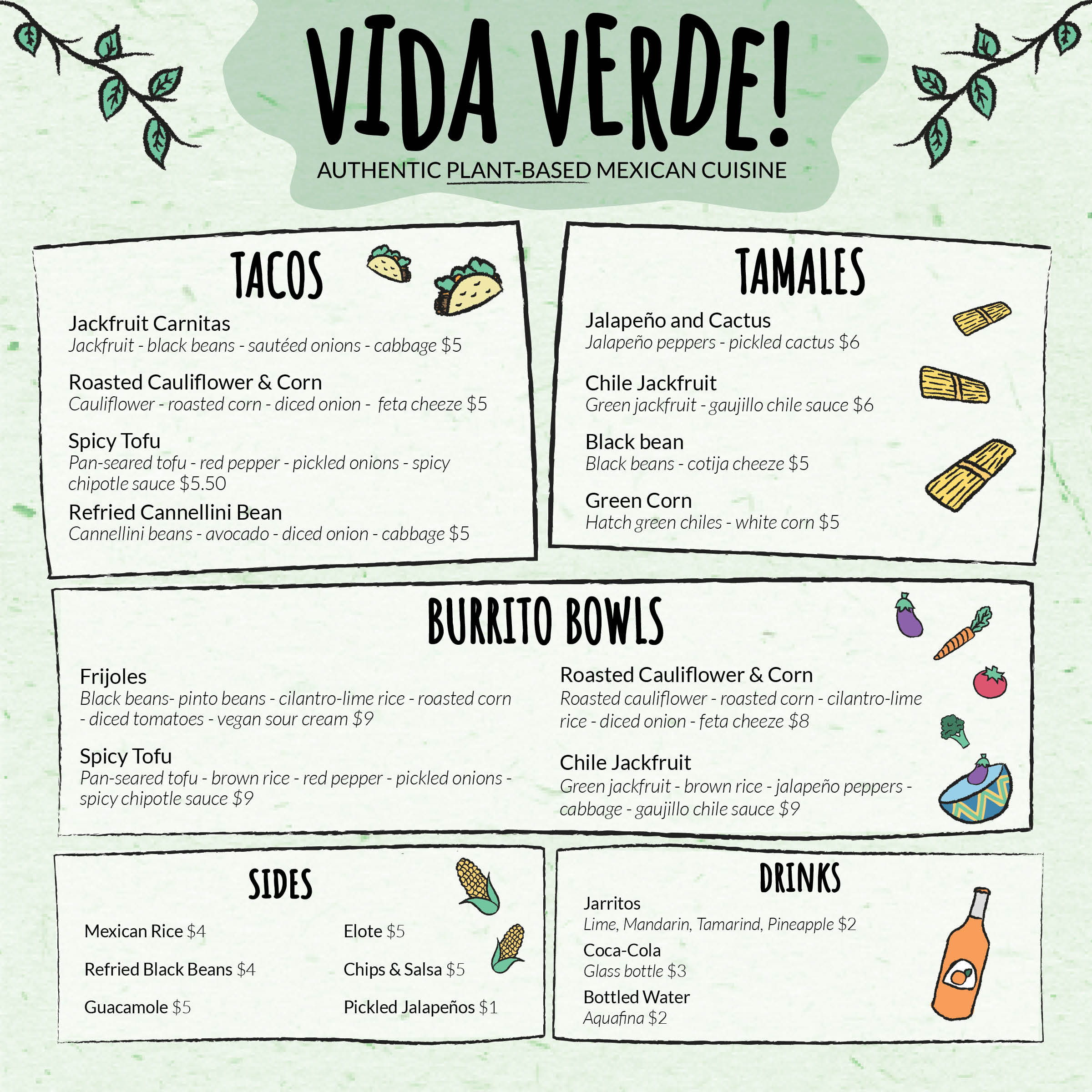 Vida Verde is a fake company I created for a food truck design project. My goal was to seek out new cultural and social situations by creating a restaurant that did a plant-based take on traditional Mexican food.