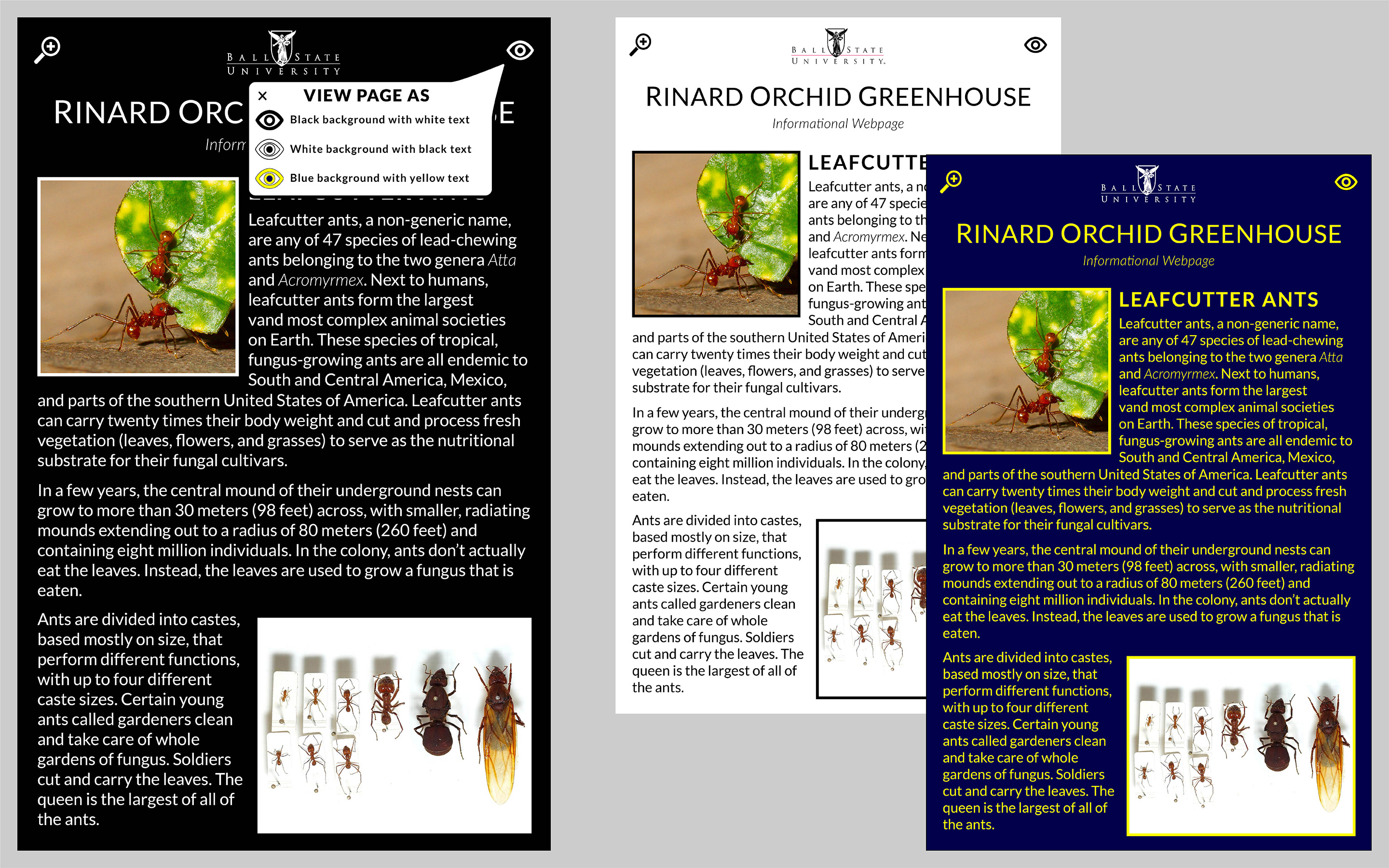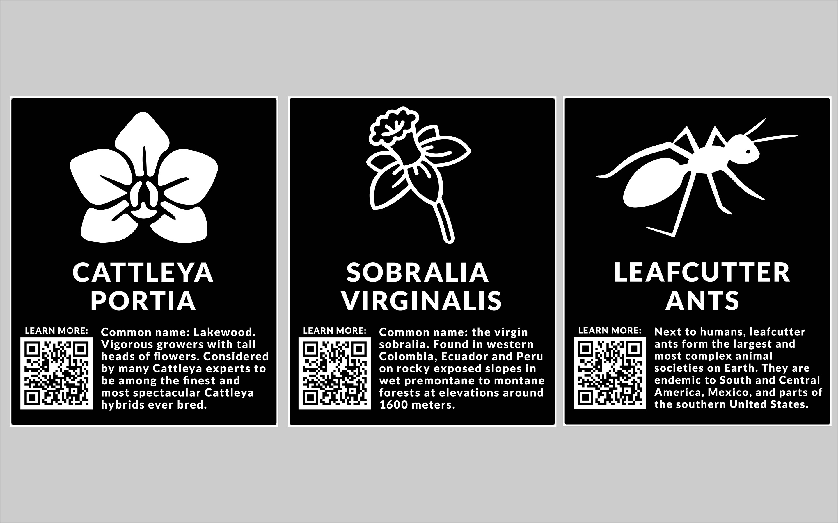 This project is an accessible design concept I proposed to the Rinard Orchid Greenhouse at Ball State University. Greenhouses are an extremely useful resource to the general public, but people with certain impairments face challenges in areas like these and rely on accessible design to guide them through unfamiliar areas. I chose to create signage that caters to people with sight disabilities. The signs include a QR code that takes guests to an informational webpage about the object allowing them to learn more about the displays with the aid of their phones.
