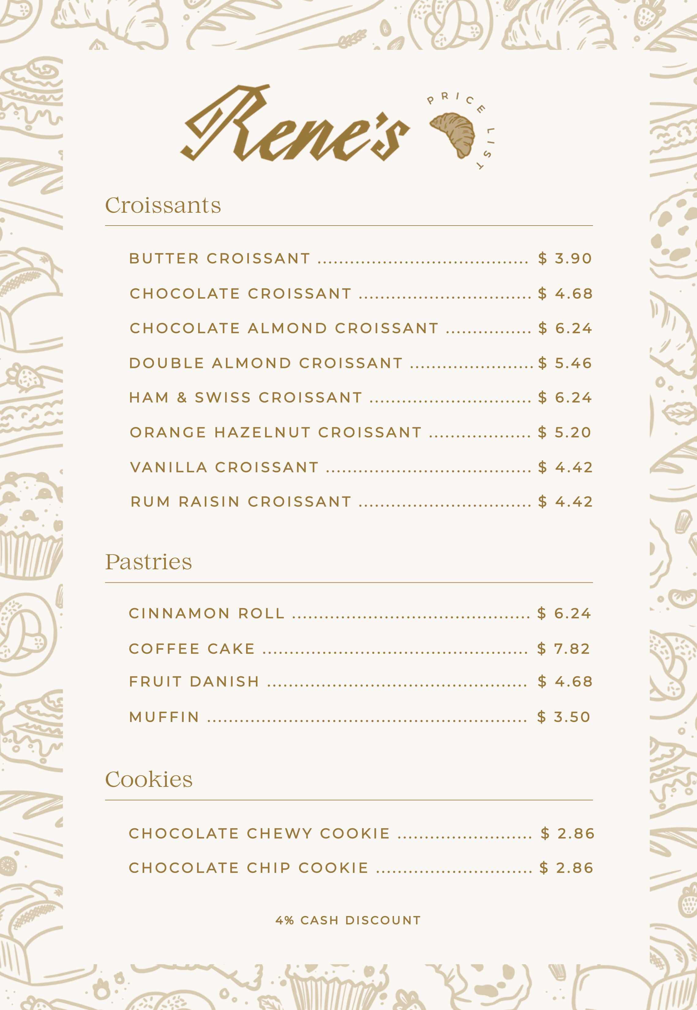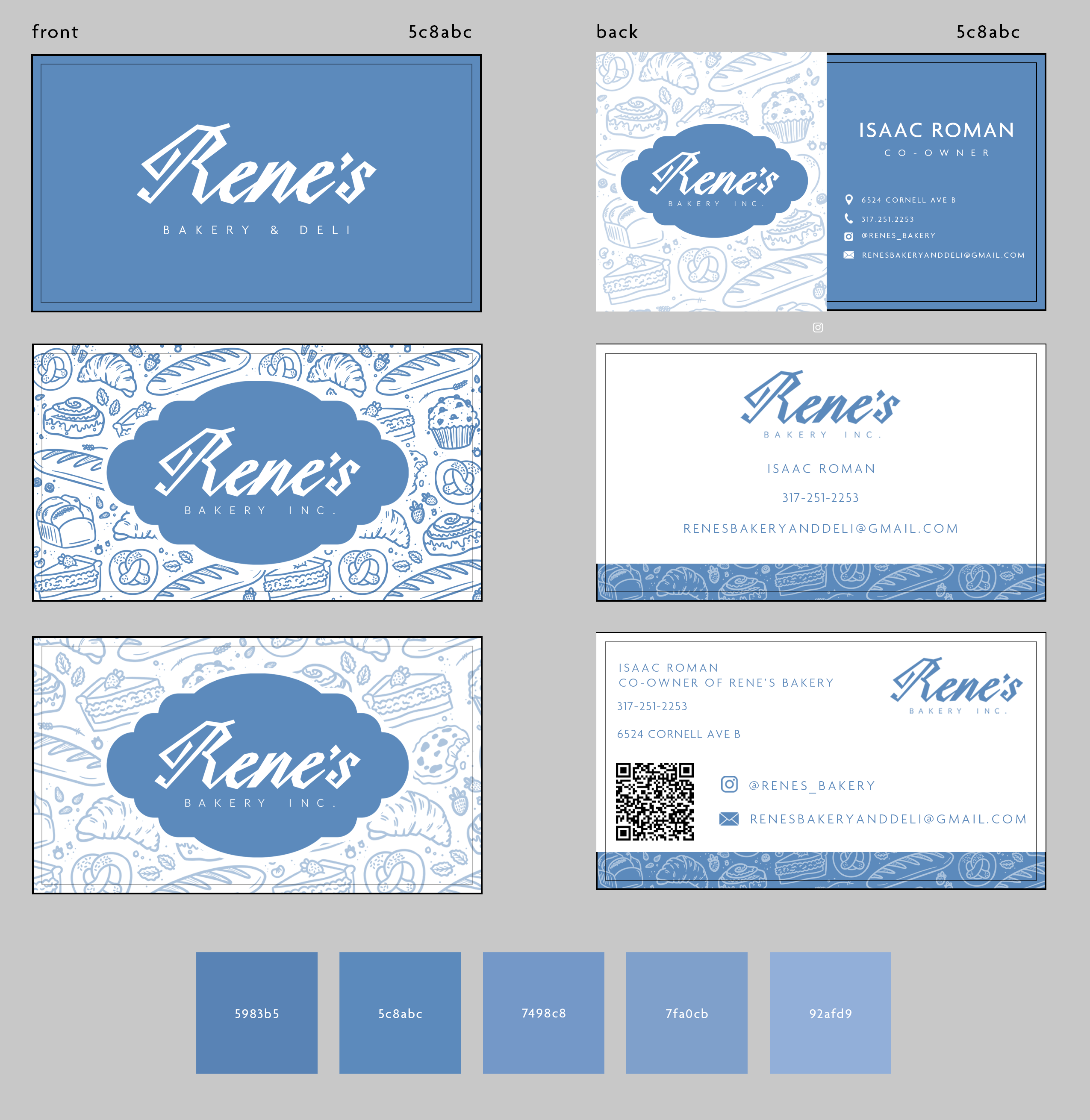 In July 2024, Rene’s Bakery—a cherished Broad Ripple staple—closed its doors after the owner fell ill. My boyfriend, a longtime employee, took on the challenge of keeping the bakery alive, and I shifted my focus from corporate design to help make that vision a reality. I created business cards, menus, print and digital advertisements, and continue to support Rene’s with thoughtful, engaging design that honors its rich history while looking toward the future.